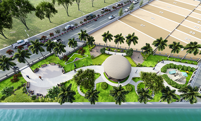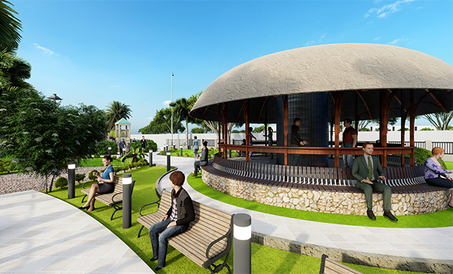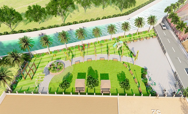 Landscaped green space with plantation for better experience.