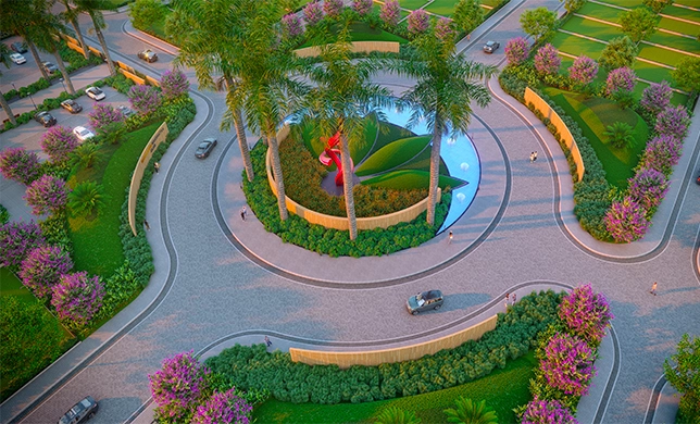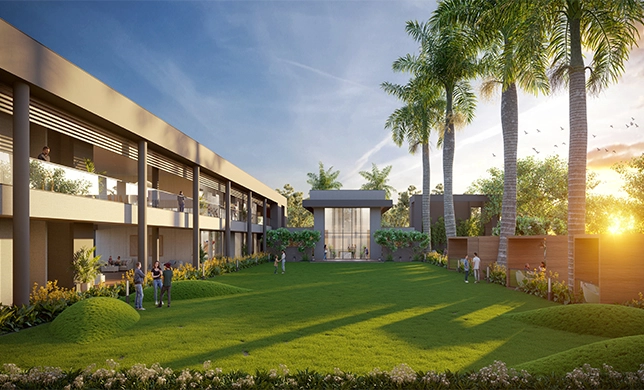 Landscaped green space with plantation for better experience.